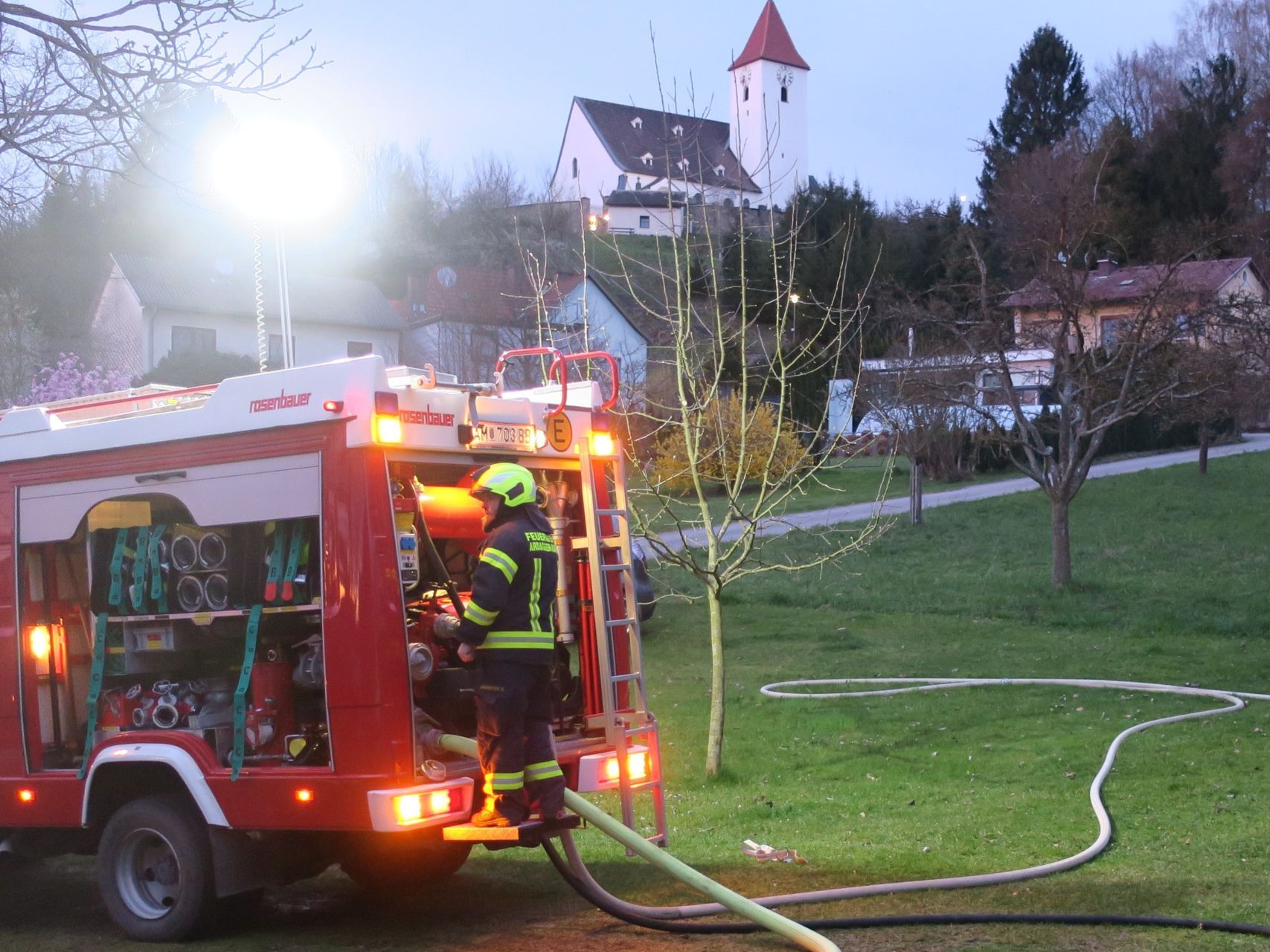 Mit insgesamt vier Einsatzfahrzeugen bekämpfen die beiden Feuerwehren den Brand und verhindern auch die weitere Ausbreitung. Höchste Priorität hat aber die Rettung der eingeschlossenen und teilweise vermissten Personen, welche zum großen Teil unter Einsatz von schwerem Atemschutz erfolgt. Dabei kommt es je nach Situation zu einer schonenden Rettung oder zu einer sogenannten Crash-Rettung. Eine Crash-Rettung wird bei akuter Gefahr für Leib und Leben der jeweiligen Person durchgeführt. Dabei muss alles sehr schnell gehen. Ziel ist das Überleben oder die Gesundheit der Person zu sichern, auch wenn damit die eine oder andere kleine Verletzung einhergehen.