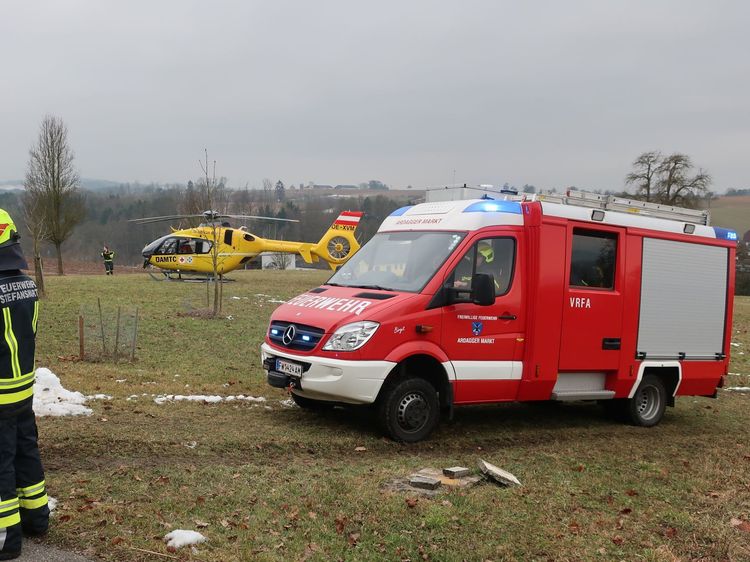 Die Feuerwehr Ardagger Markt hilft zusätzlich auch mit Decken und Spineboard samt Headblocks. Mit dem Vorausrüstfahrzeug wird auch Ausrüstung des Rettungsdienstes von deren oberhalb des Unfallortes abgestellten Fahrzeugen zur Einsatzstelle transportiert. Gemeinsam mit der FF Stephanshart wird dann noch das Rote Kreuz beim Abtransport des Verletzten von der Unglücksstelle unterstützt. Für den Transport ins Krankenhaus steht zum Zeitpunkt des Einrückens ins Feuerwehrhaus bereits der Rettungshubschrauber bereit.