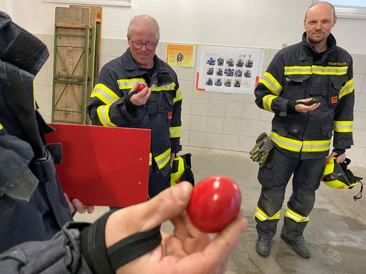 Zur Messung des Feingefühls werden Ostereier eingesetzt. Vor dem Start der Übung erhält jeder Teilnehmer ein Osterei, das bei mehreren Stationen zum Einsatz kommt. Ziel ist, dass diese Eier nach Ende der Übung noch möglichst unversehrt sind. Obwohl alle Teilnehmer die Geräte äußerst behutsam betätigten, haben die Eier die Übung doch nicht ganz ohne Kratzer überstanden. Als Feuerwehrmann mit dem besten Feingefühl wird Zugskommandant OBM Ewald Schaurhofer ermittelt. Seine Trophäe: ein Schoko - Osterhase.