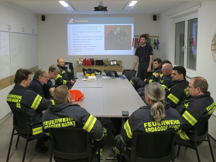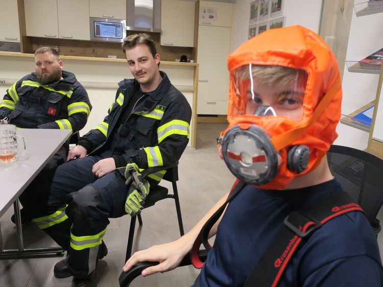 Neben der Wärmebildkamera wurde auch eine neue Fluchthaube investiert. Fluchthauben werden Personen angelegt, wenn diese von der Feuerwehr durch einen verrauchten Bereich ins Freie gerettet werden müssen. Die alten Fluchthauben wurden ausgeschieden und stehen nun als Übungsgeräte zur Verfügung.