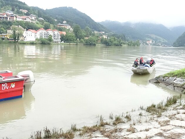 Erneute Alarmierung, diesmal nach Freienstein. Wiederum rücken VORAUS und TANK Ardagger Markt mit dem Rettungsboot aus. In Hößgang wird das Rettungsboot zu Wasser gebracht und führt den Einsatzauftrag zur Kontrolle der Uferbereiche bis Freienstein durch. Ebenso werden die Teiche in Hößgang kontrolliert. Das Bezirksfeuerwehrkommando Amstetten ist ebenfalls vor Ort. Im Bereich bis Freienstein können nur mehr geringfügige Reste des Dieselaustritts festgestellt werden, wodurch keine Maßnahmen in diesem Bereich mehr gesetzt werden müssen. Donauabwärts im Bezirk Melk müssen jedoch Ölsperren errichtet werden.