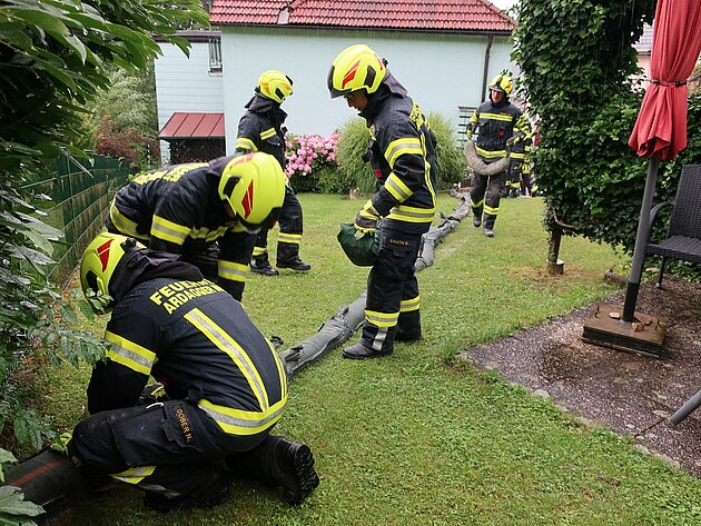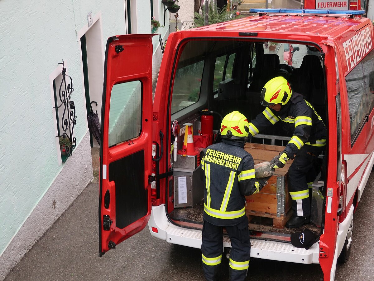 Nach schweren Niederschlägen ruft die Sirene kurz vor Mitternacht die FF Ardagger Markt zum Einsatz in die Sonnensiedlung. In den Keller eines Hauses…