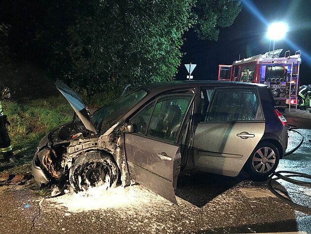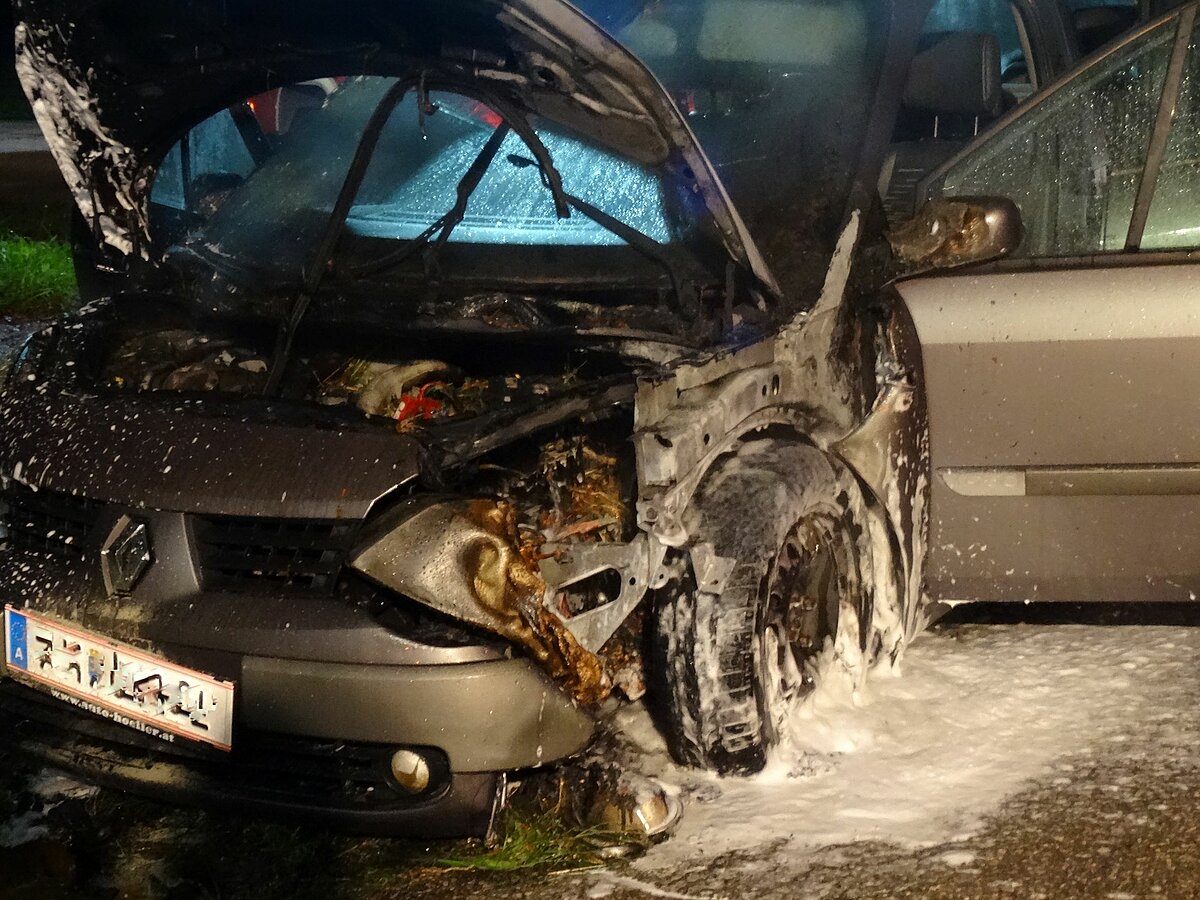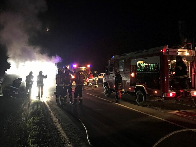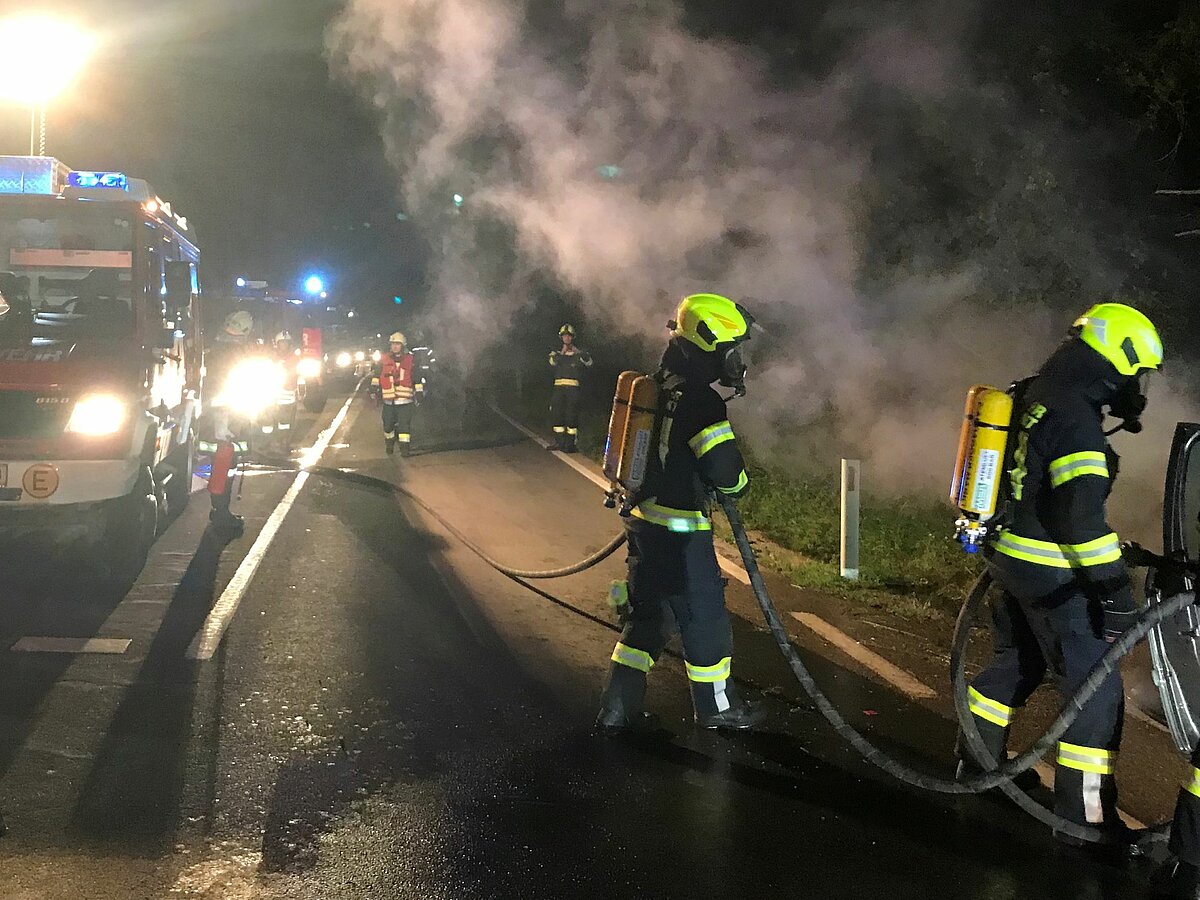 Am späten Abend nimmt ein PKW-Lenker während der Fahrt Brandgeruch wahr und stoppt sein Fahrzeug an der Kreuzung B119 nach Habersdorf. Er bemerkt den Brand auf der vorderen linken Seite des Fahrzeuges und alarmiert sofort die Feuerwehr.