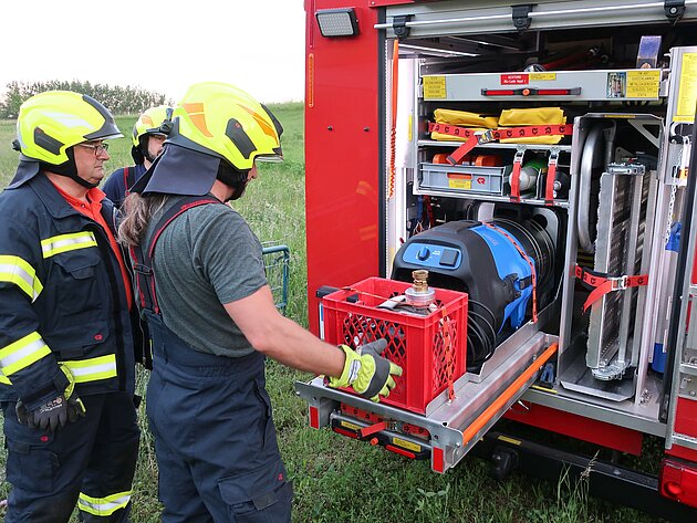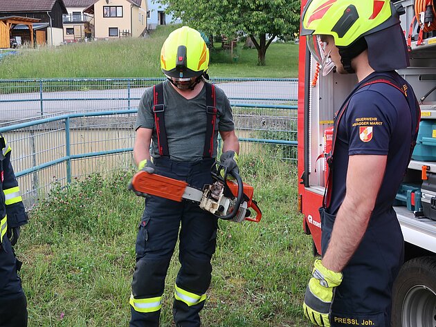 Heute startet Gruppe 2 in den Ausbildungsbetrieb nach dem Corona - Lockdown. Am Programm stehen Geräte, welche besonders bei Unwetterereignissen zum Einsatz kommen: Schmutzwasserpumpen, Stromerzeuger, Beleuchtungsgeräte, Motorkettensäge, Wathose und Nasssauger.