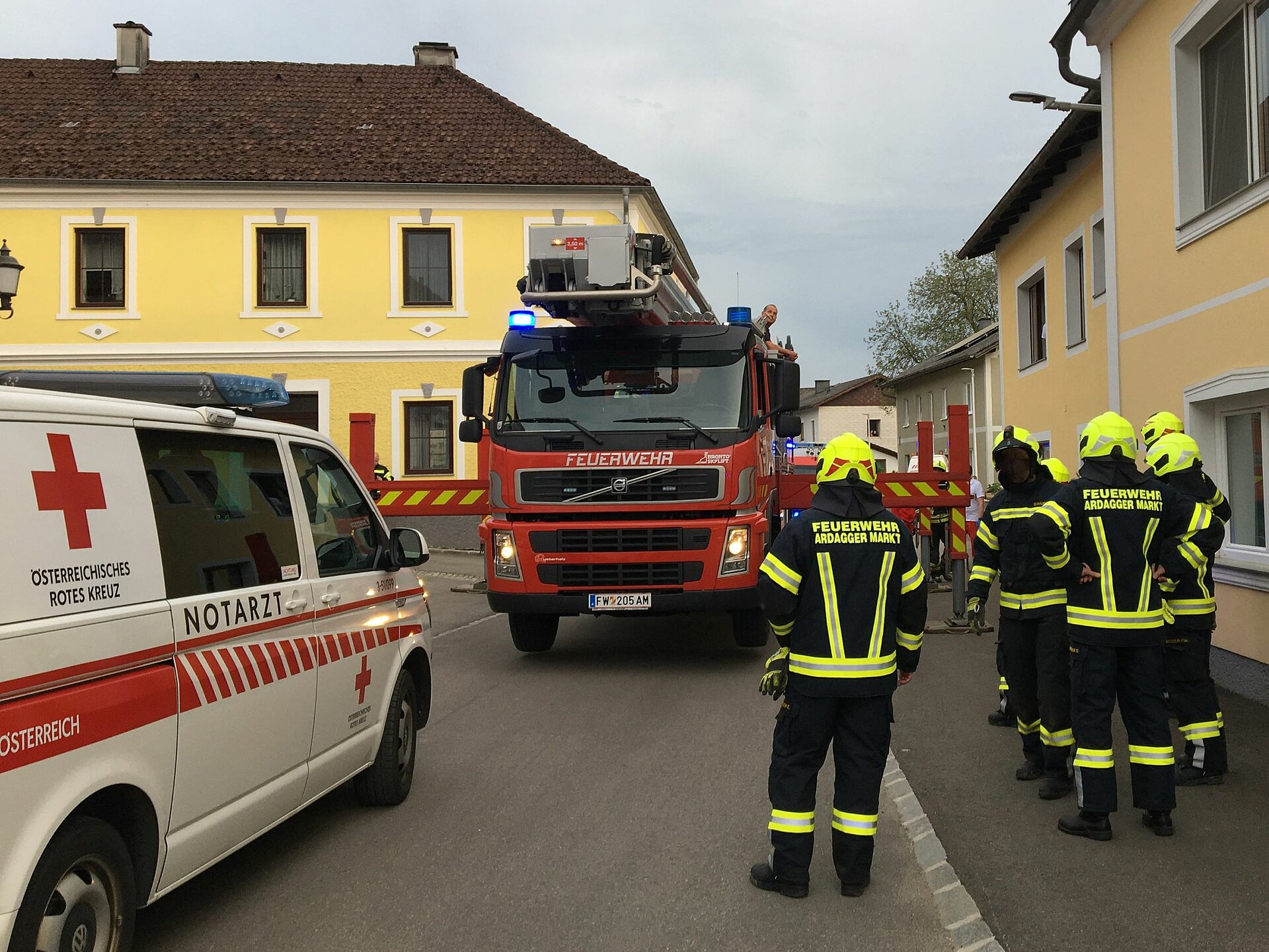 Um 19:15 Uhr wird die FF Ardagger Markt durch die Sirene und mit der Alarmmeldung "Person in Notlage" zum Einsatz gerufen. Am nur etwas mehr als 100 Meter vom Feuerwehrhaus entfernten Einsatzort ist bereits der Rettungsdienst samt Notarzt im Einsatz. Eine verletzte Person im Obergeschoß wird in weiterer Folge mit Einsatz des Hubsteigers der FF Amstetten schonend nach unten gebracht und mit dem Rettungsdienst ins Krankenhaus Amstetten eingeliefert. Die FF Ardagger Markt unterstützt den Rettungsdienst im Obergeschoß und sperrt die Straße für den Einsatz des Hubsteigers. Nach ca. einer Stunde ist der Einsatz beendet und die Einsatzbereitschaft wieder hergestellt.