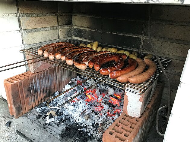 Die "Übungsbesprechung" erfolgt vor dem Grillkamin von Wasserdienstwart Andi.