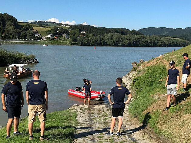 Sommerliche Übung mit Rettungsboot und Höhenrettungsausrüstung