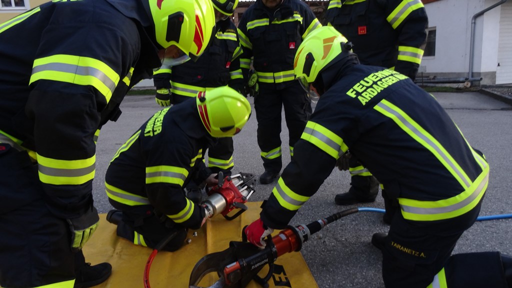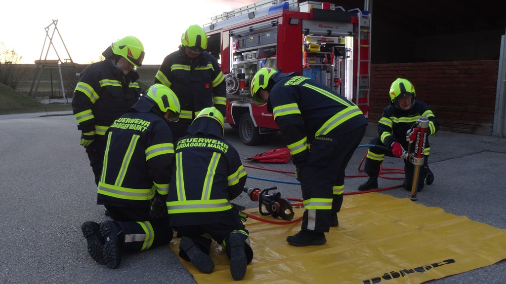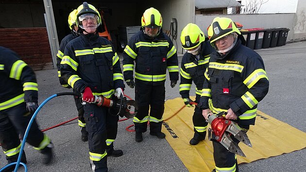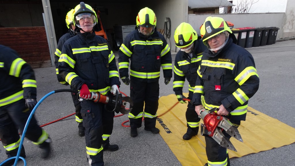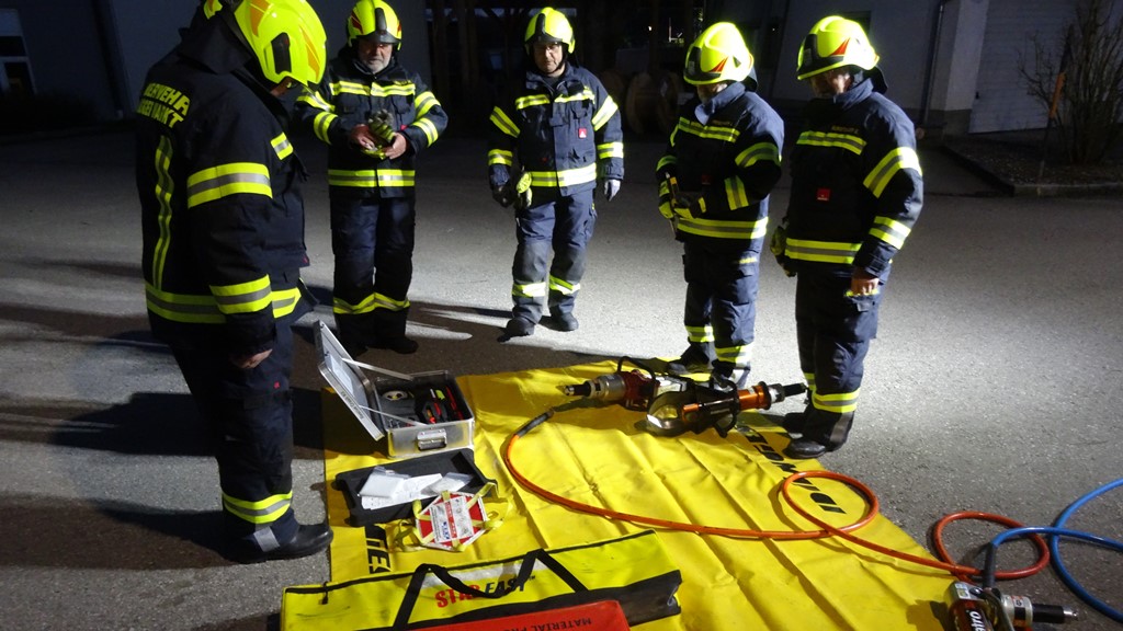 Die erste Übung der Silberrücken im Jahr 2020 läuft unter dem Schwerpunkt Verkehrsunfall. Dabei stehen einige wichtige technische Geräte im Mittelpunkt. Hydraulisches Rettungsgerät samt Zubehör, Lichtmast und Seilwinde werden vorbereitet und in Betrieb genommen.