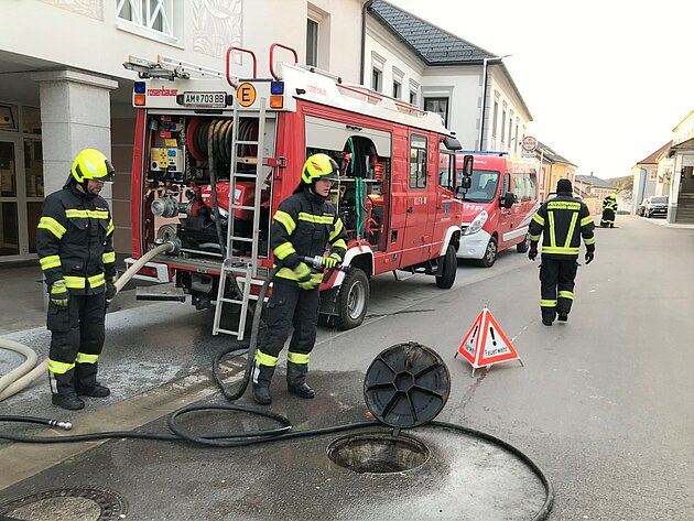 Abends um kurz vor 18:30 Uhr wird die Feuerwehr Ardagger Markt alarmiert. Grund ist der Austritt von Kanalflüssigkeit am Marktplatz. Mit Einsatz einer Kanalspülratte kann die Mannschaft das Problem rasch lösen und den ordnungsgemäßen Abfluss wieder herstellen.