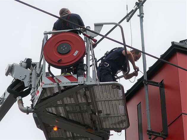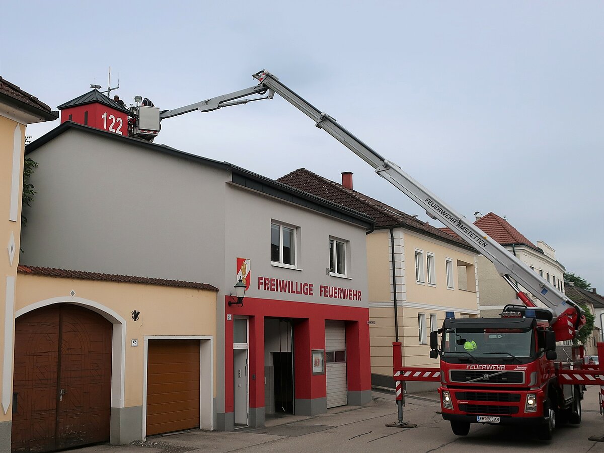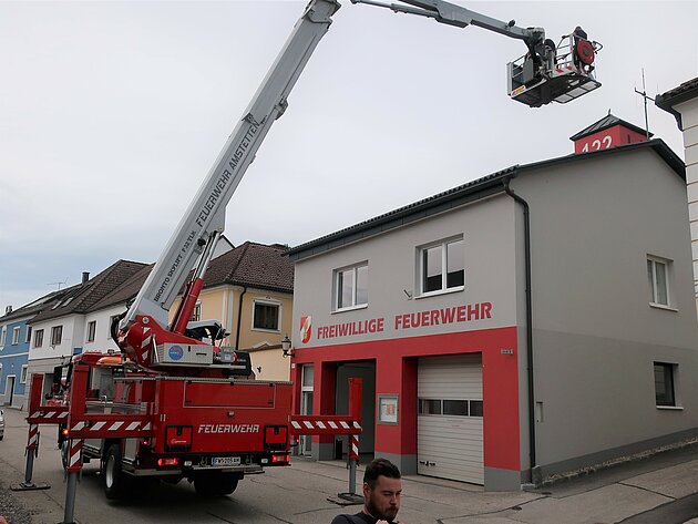 Im Anschluss unterstützt uns die FF Amstetten bei der Reparatur der Sirenenantenne an unserem Schlauchturm.