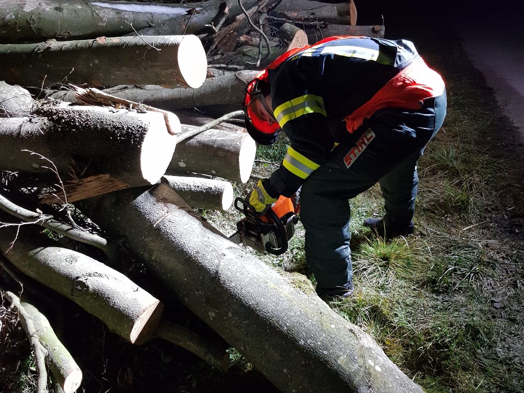 Letzte Übung vor der "Winterpause": Sicheres Arbeiten mit der Motorkettensäge.
